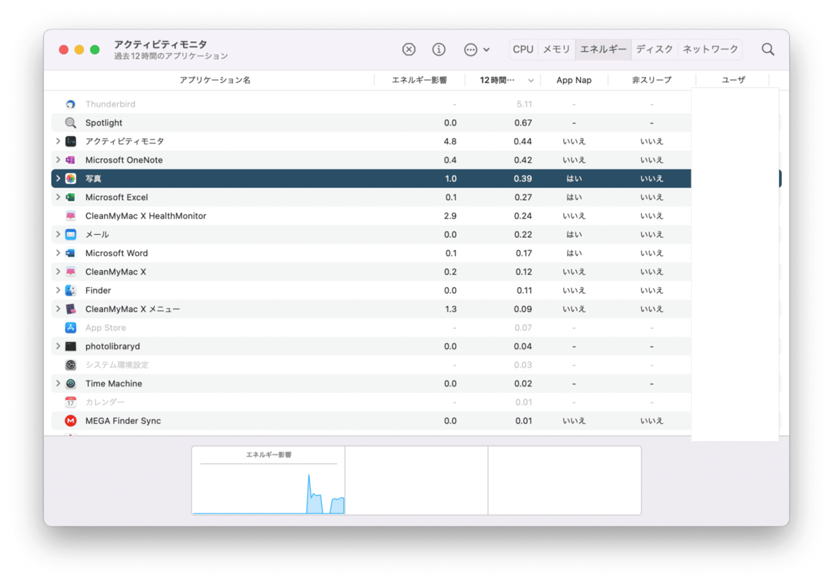 - アクティビティモニタを起動する