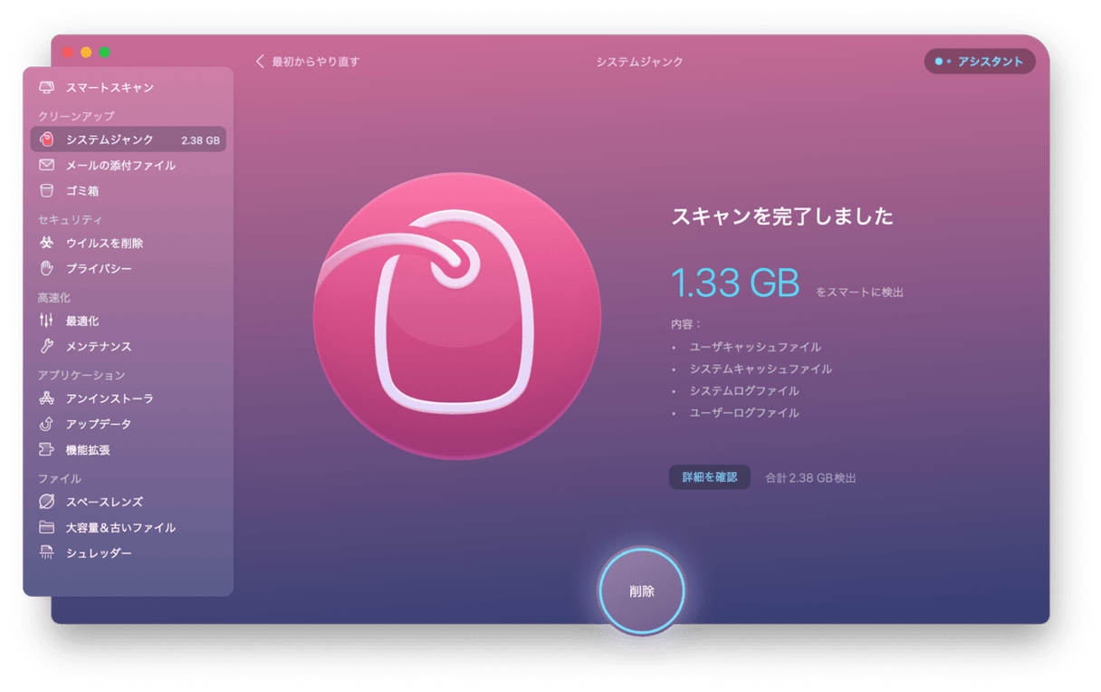 このようなデータをクリーンアップするにはアップル公証のアプリCleanMyMacが役立ちます。