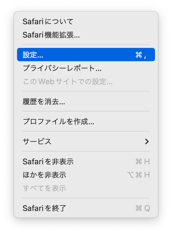 - スクリーン上部のツールバーにあるSafariから、環境設定をクリック