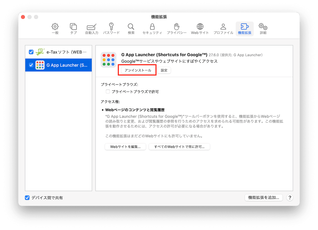 SafariやChromeなどのブラウザの拡張機能を削除する