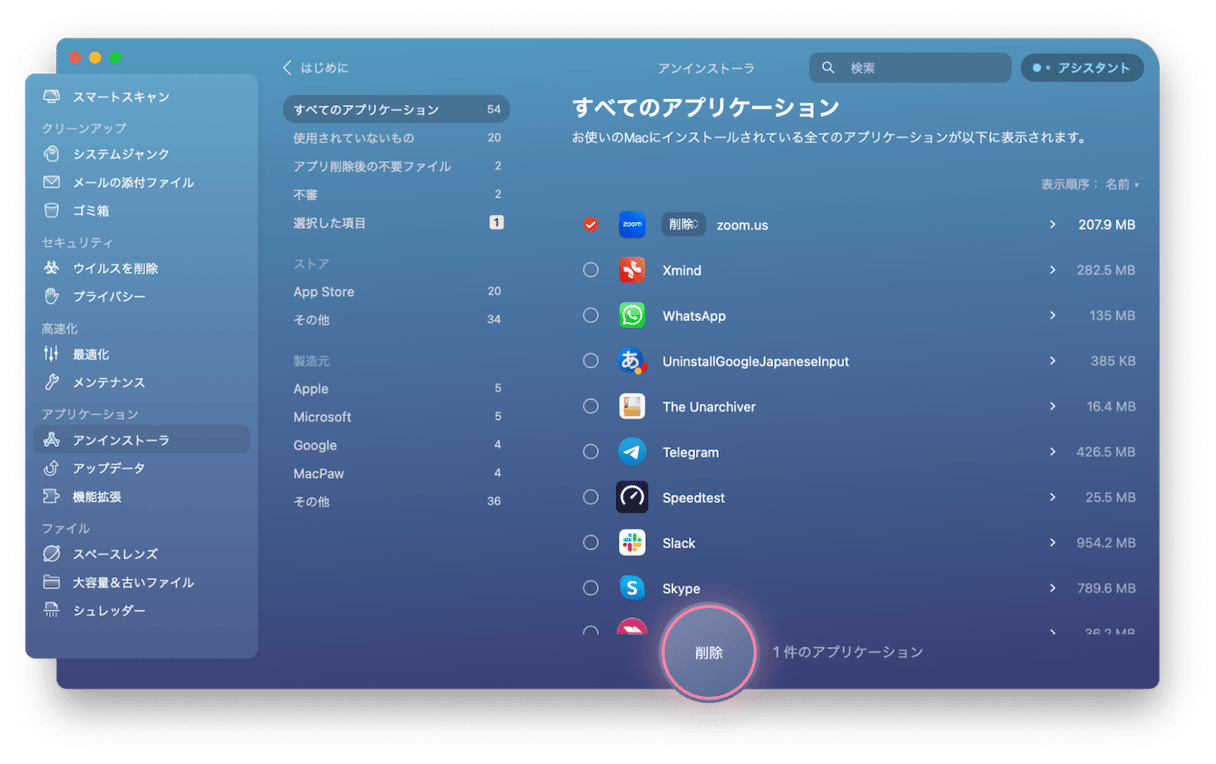 この他にも、優れたアンインストーラ機能を持つアプリを利用する事で、Zoomの素早く簡単なアンインストールが可能です。